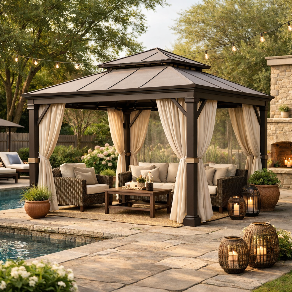 Design a peaceful outdoor retreat where shade, comfort, and timeless style come together for effortless relaxation and entertaining.